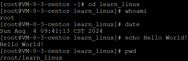 其中root是用户名,VM-8-3-centos是hostname,learn_linux是当前目录