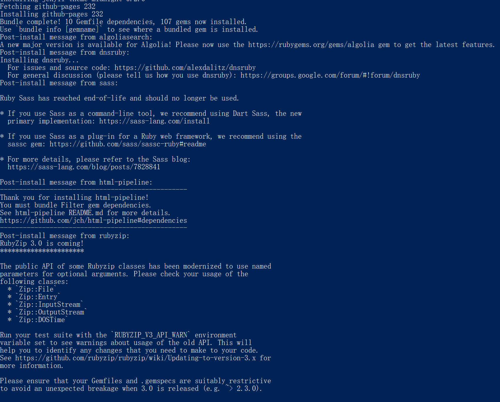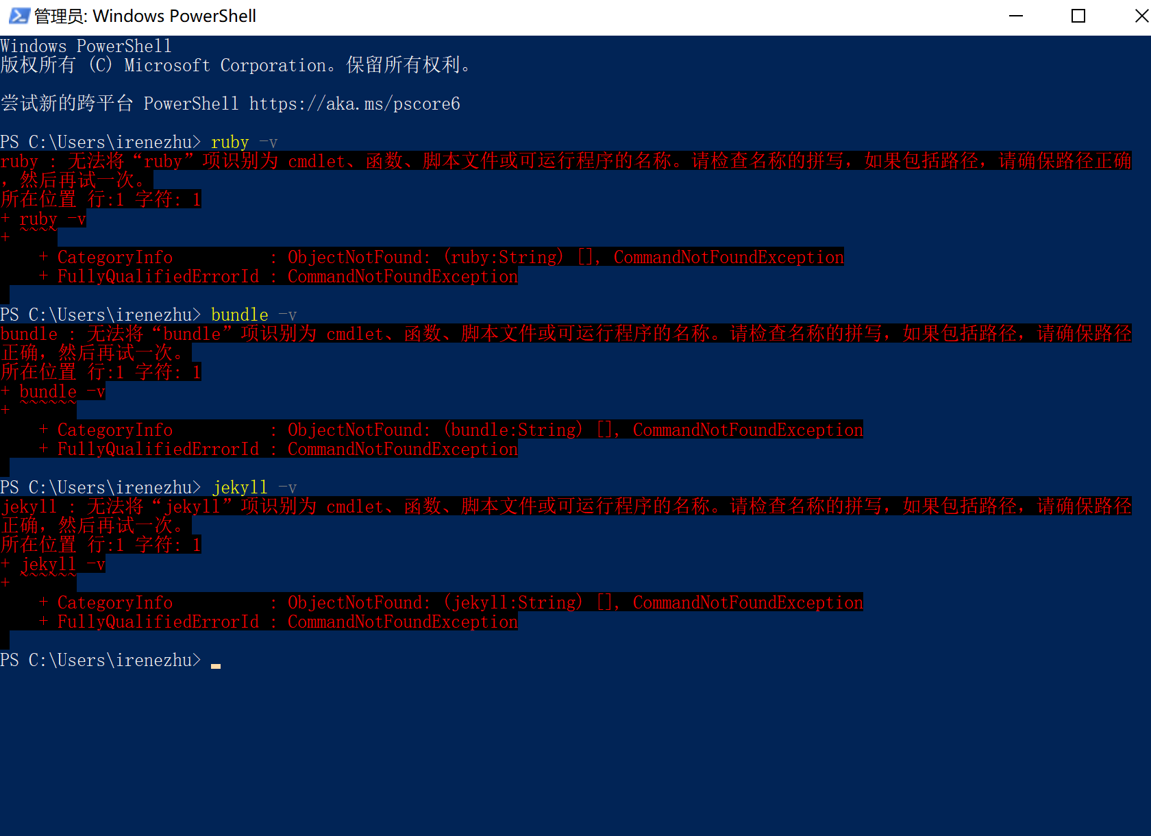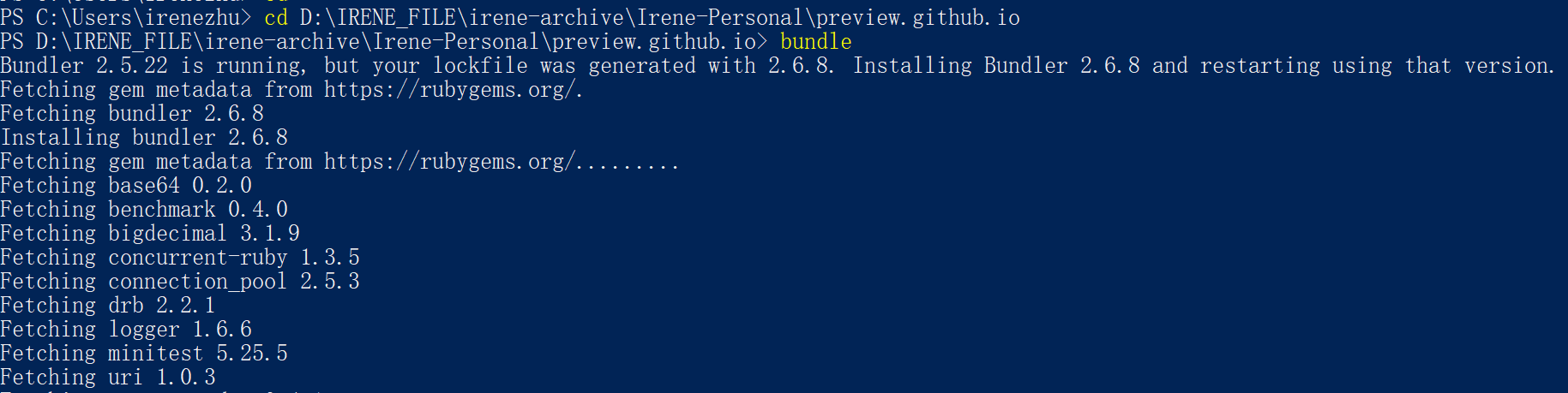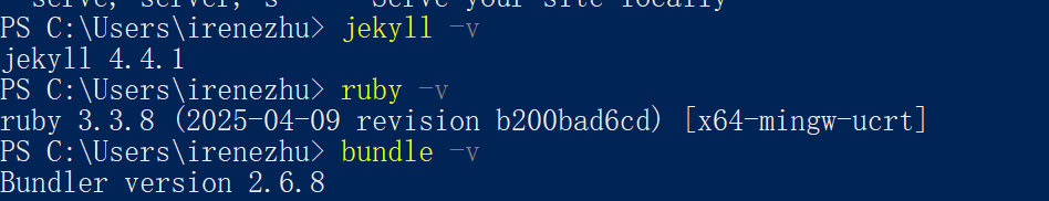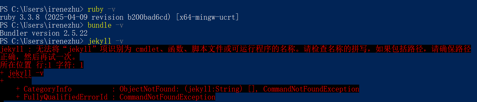 i. 所以现在有Ruby、Bundle,缺个Jekyll