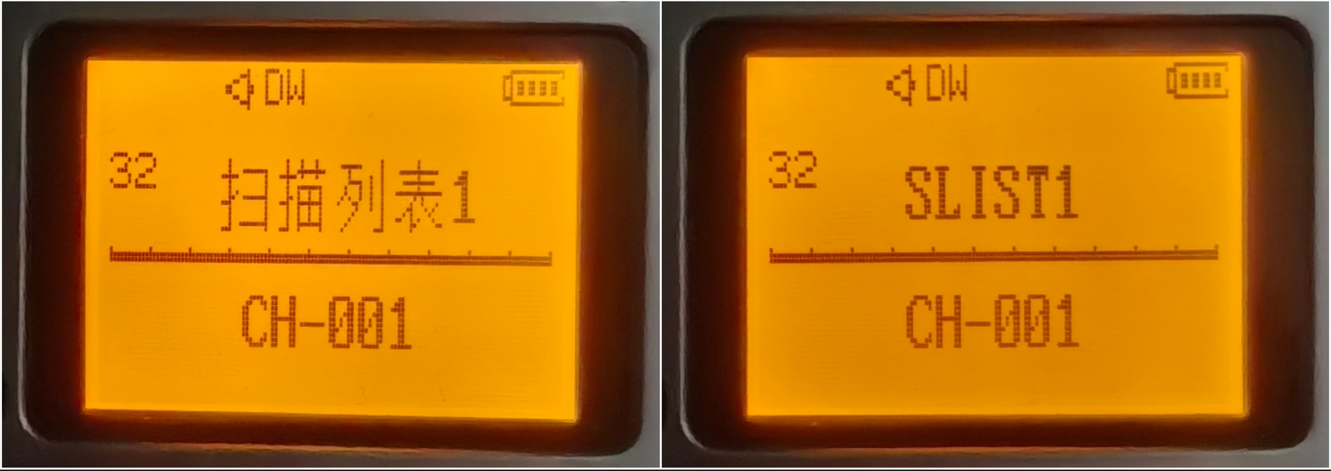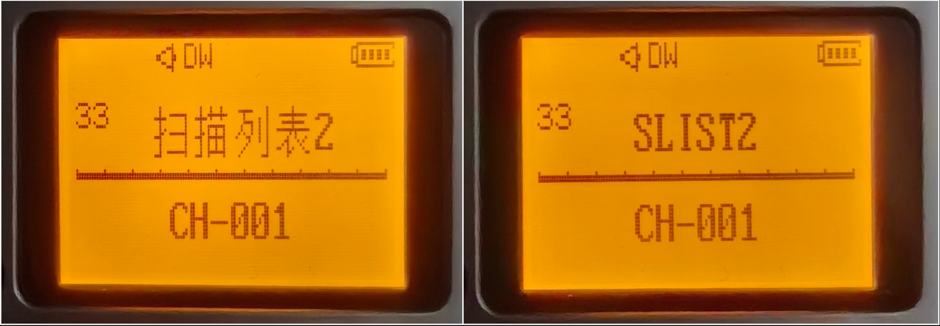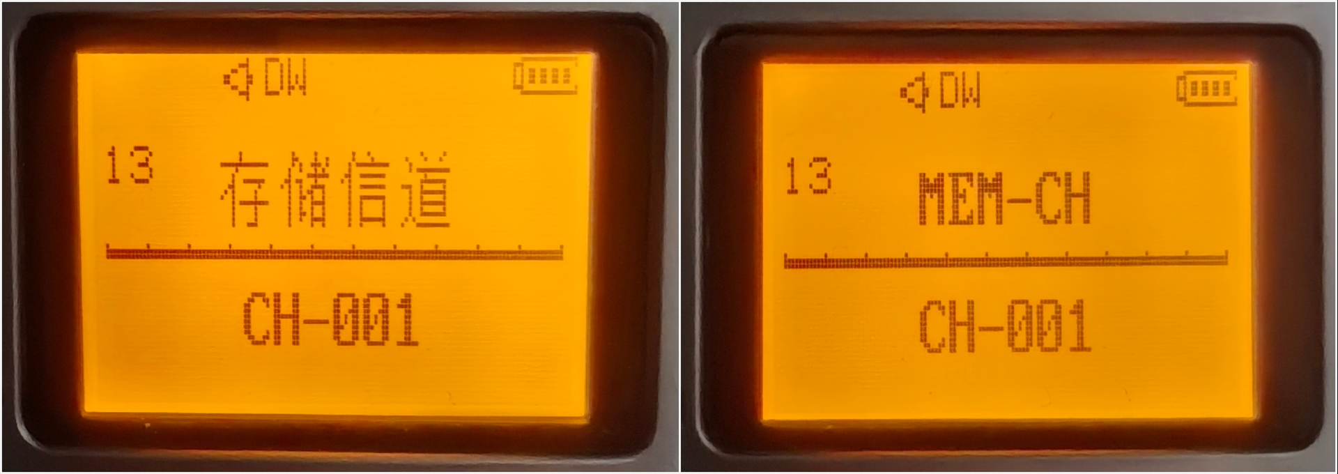 正常在手台的显示界面,会有两组信道或者频率,上面是A信道,下面是B信道。