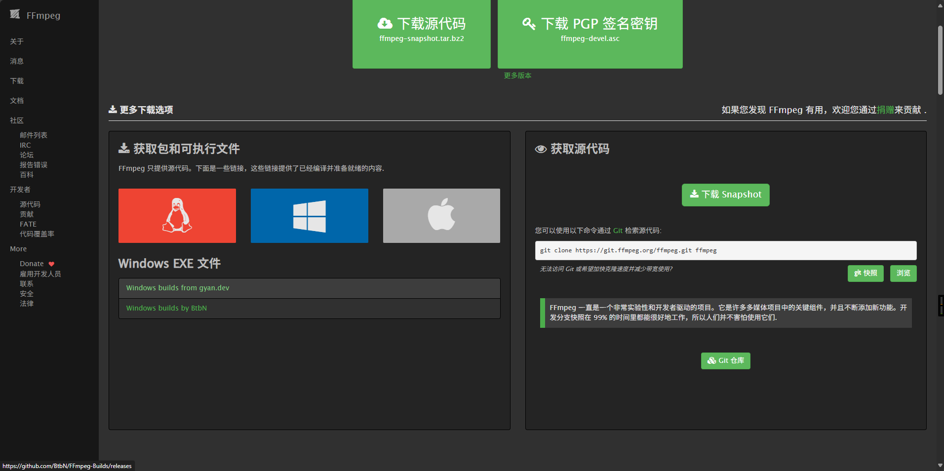 然后下载最新的:ffmpeg-master-latest-win64-gpl-shared.zip