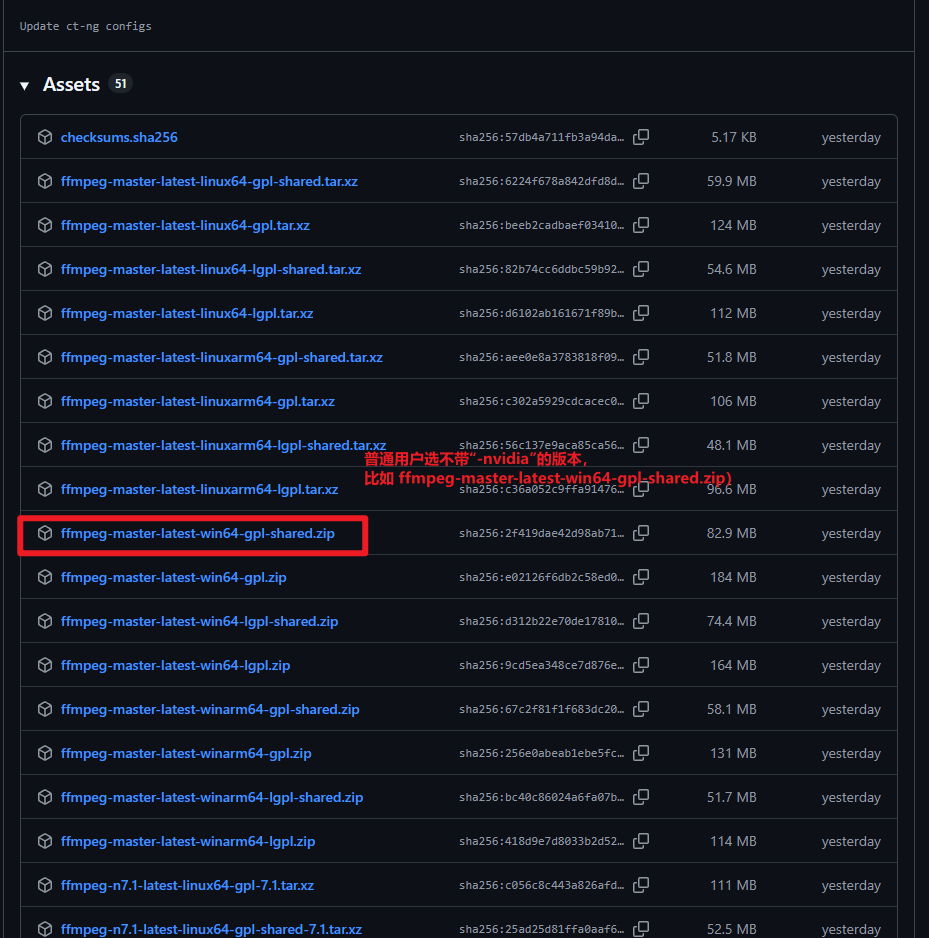 选择你自己用的系统对应的版本,如我的windows用这个:Windows biulds byBtbN
